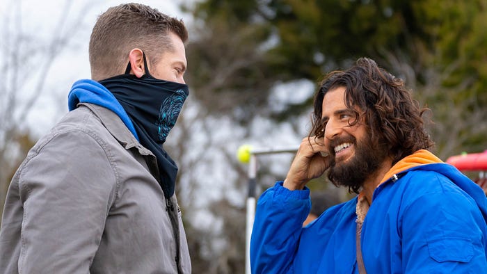 Dallas Jenkins, criador de The Chosen, e Jonathan Roumie, ator que interpreta Jesus, conversando